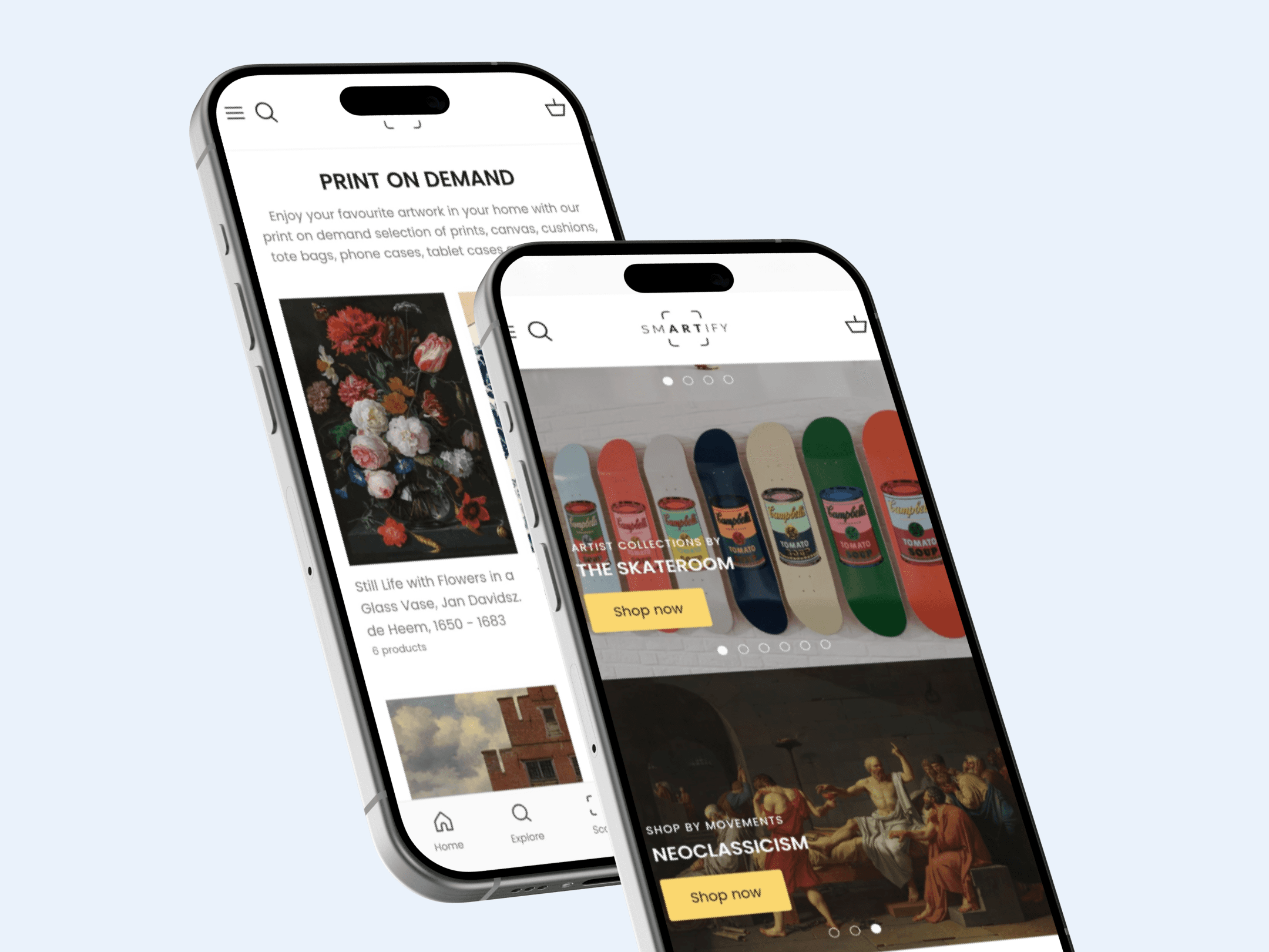 Extend your museum shop's reach beyond the gallery with Smartify Marketplace. Connect with engaged visitors at key moments: during tours, on object pages and in post-visit emails. Sync products via Shopify, Magento or other e-commerce software with no extra workload, while retaining full control over pricing, shipping and presentation.
